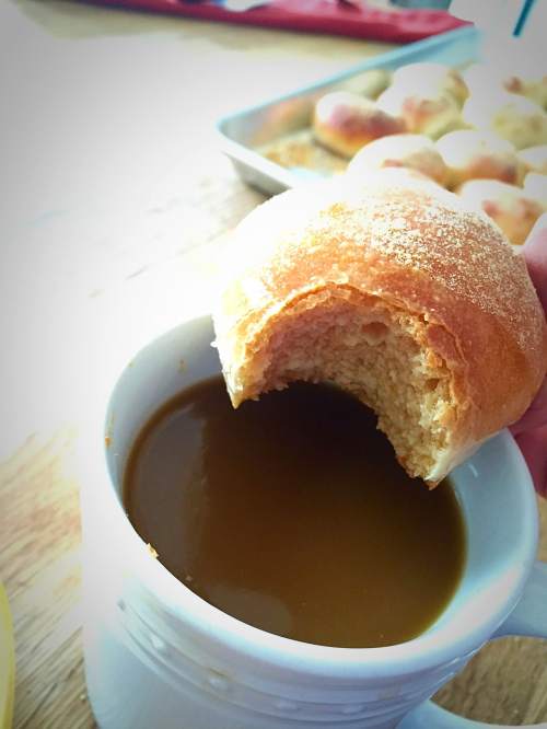 It may surprise my readers that I hated eating as a child. Breakfast was merely a tedious chore, and eating a pan de sal took me hours. But nearly every morning, before going to school, I’d watch my father eat his breakfast: Eggs over easy, a cup of coffee, and two pan de sals. He’d sometimes take a bite out of the pan de sal after a yolky forkful of eggs, but I loved it when he’d dip his pan de sal in his coffee. I would do the same with my chocolate milk, and he got a kick out of that. He’d finish his plate, say goodbye, and run out the door to pick up produce in Chinatown. When no one was looking, I’d gulp the last bit of coffee in his cup. Those were the moments when I really enjoyed breakfast.