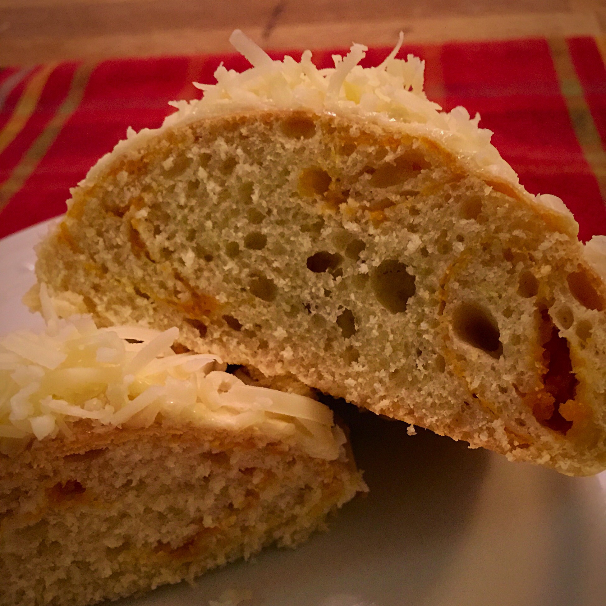 Ensaymada is a sweet brioche-like bread roll that’s iced with whipped butter and sugar, and topped with a sweet cheese. It has Spanish origin. I’ve personally never had ensaimada, but it looks like it would be similar in flavor to ensaymada, just without the cheese. Leave it to Filipinos to add cheese.